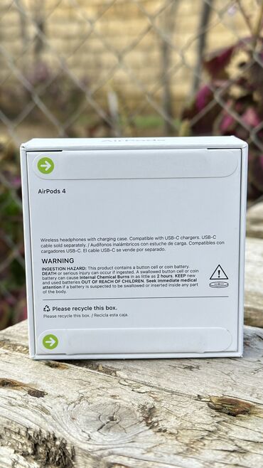 Daxil edilən komponentlər: (USB-C şarj kabeli ayrıca satılır), AirPods 4, Doldurma qutusu (USB‑C), Sənədlər