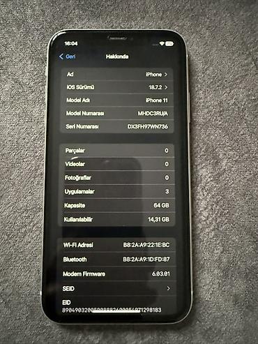 Apple iPhone 11 – Ağ rəng Əvvəla salam telefon ideal vəziyyətdədir 64/4 yaddaş 83% zavod pildir problemsiz telefodur üzərində usb verilecek sadece güncəlləmdə face id itib basqa problem yoxdu tru ...
