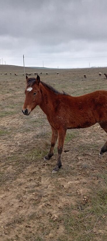 Satılır: Qonur rəngli qulun - Rəng: tünd qonur (qır), alınında ağ ulduz nişanı - Bədən quruluşu: düz ayaqlı, balanslı, uzunboyun; güclü döş və kürək - Yaş kateqoriyası: qulun/ilkin yaş - Xüsusiyyə...