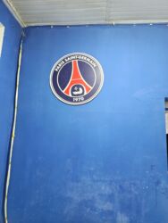 - Paris Saint‑Germain (PSG) loqolu dairəvi divar lövhəsi.
