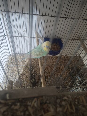 Ağ metal şəbəkəli quş qəfəsi, mavi plastik altlıqla. Geniş ön qapı, çıxarılan altlıq (asan təmizləmə üçün sürüşdürülən tepsi) və yanlarda möhkəm məhəccərlər. Daxildə: - 2 ədəd taxta perch - Rəngli ...