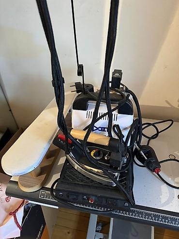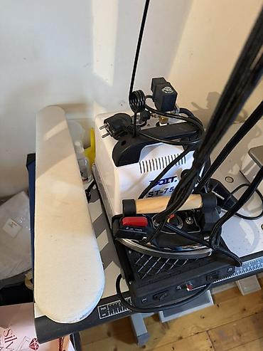 Peşəkar buxarlı ütü sistemi - Quraşdırılmış buxar generatoru olan sənaye tipli ütü - Ütü paltarı ilə birlikdə üst blokda yerləşir, aşağıda su/buxar qazanı - Ön paneldə manometr (təzyiq göstəricisi...
