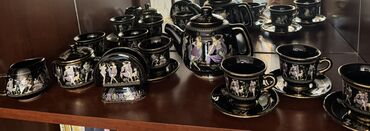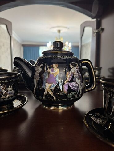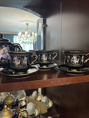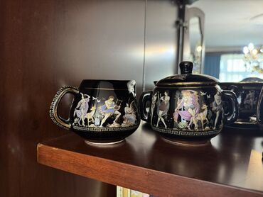 Qara rəngli, üzərində yunan motivləri olan çay dəsti. Dəstdə çaydan, qənd qabı, süd qabı, fincanlar və nəlbəkilər var. Zərif dizaynı ilə mətbəxinizə xüsusi gözəllik qatacaq.