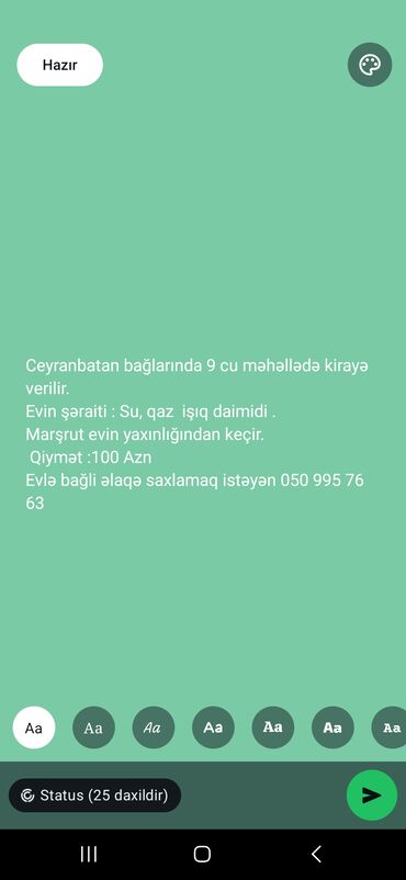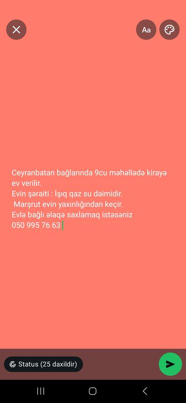 Ev cox genisdir heyeti var qaz su isix dayima isleydir cox elverisli yerdedir evin us tereginde mekteb paloknika market afdobus dayanacagina 5 dq mesafede.Ciddi şəxslər əlaqə saxlasın.Ofis xidmət h...