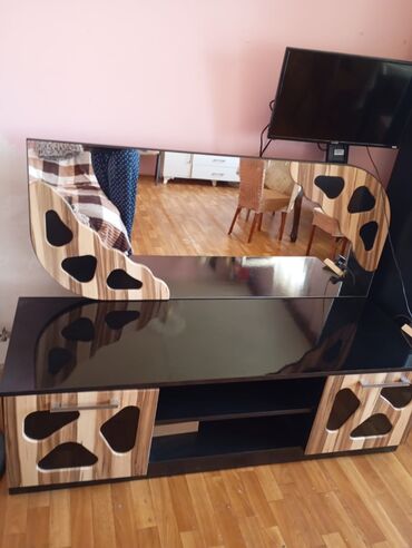 TV və iş masası kombinasiyası 6 eded tv alti tep teze hes bir problem yoxdu- Material: açıq palıd rəngli laminat/LDSP - Ölçü təxmini: uzunluq təqr. 180–200 sm, dərinlik 40–45 sm, hündürlük 70–75 s...