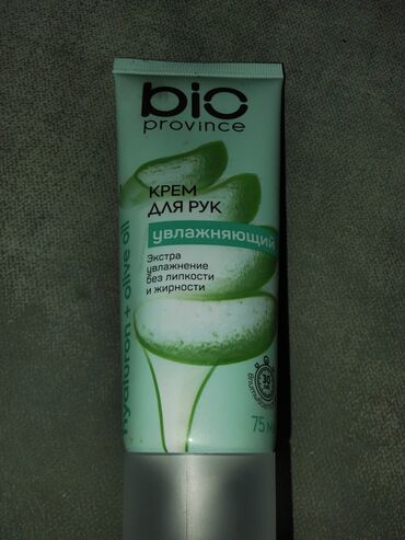 - Bio Province nəmləndirici əl kremi – hialuron və zeytun yağı kompleksi ilə. Yapışqanlıq və yağlılıq hissi olmadan ekstra nəmləndirmə. 75 ml.