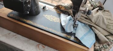 - Klassik metal korpuslu, bəzəkli platformaya sahib tikiş maşını.
