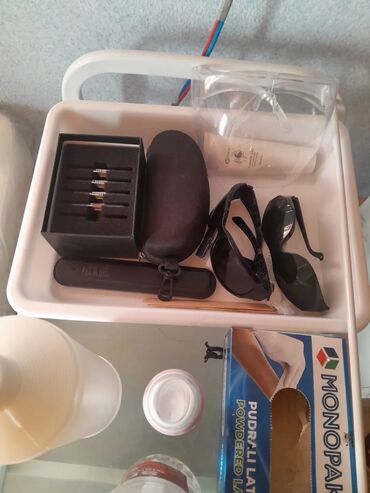 - Aksesuarlar və sərfiyyat: qoruyucu eynəklər (müştəri və operator üçün müxtəlif modellər), ölçülü optik ucluqlar dəsti, krem/gel, taxta spatulalar, lateks əlcəklər (qutu), kiçik konteynerlər və qablar, alət qabları/etuylər.