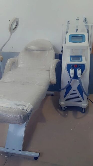 - IPL/SHR tipli epilyasiya və dəriyə qulluq aparatı: 2 ədəd soyuducu başlıqla, ön paneldə rəqəmsal sensor ekran, əlavə yuxarı panel ekranı, təkərli konstruksiya, hava ventilyasiyalı korpus, təcili stop düyməsi, başlıqlar üçün asqılı dayaq.