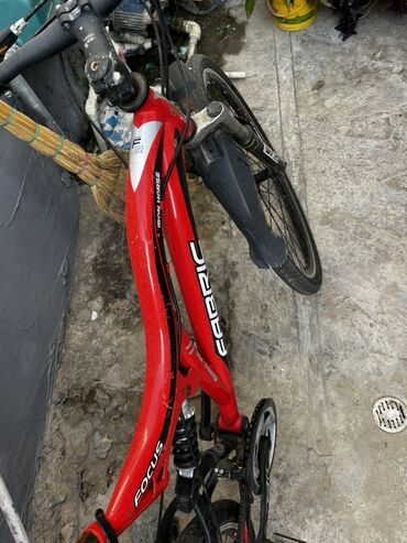Dağ/şəhər tipli velosiped - Çərçivə: amortizatorlu (arxa yaylı), alüminium/metal konstruksiya, qırmızı-qara rəng sxemi - Asqı sistemi: ön amortizator vilkası, arxa yay - Təkərlər: 26" ölçülü - Ört...