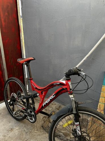 Şəhər və yüngül off-road üçün dağ velosipedi - Brend/model: Fabric Deer (çərçivədə qeyd olunub) - Çərçivə: alüminium görünüşlü, iki rəngli (ağ/qırmızı), full-suspension quruluş (arxa amortizator h...