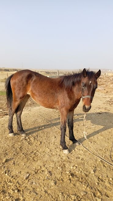 Satılır: Qonur rəngli at Xüsusiyyətlər: - Rəng: tünd-qonur (qara yal və quyruq), dırnaqlarda ağ işarələr - Bədən quruluşu: yığcam, möhkəm, düz bel xətti - İstifadə sahələri: kənd təsərrüfatı işlər...