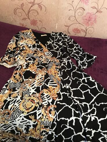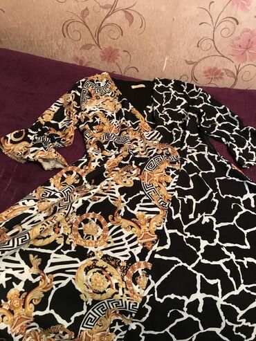 - M ölçüdə geyimlər. - Don 1: Leopard naxışlı, uzun, bədənə oturan, sağ tərəfdən yarıqlı, uzunqol. Qiymət: 15m. - Don 2: Boz rəngli, qısayaxalı, uzunqol, büzgülü və yan hissədə volan detallı. M ölç...