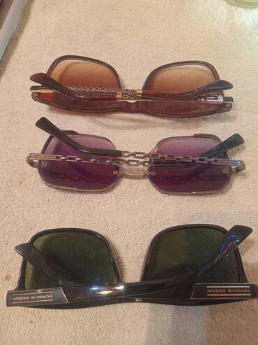 - Porsche Design kvadrat çərçivə: tünd yaşıl şüşələr, qara parlaq asetat çərçivə. Qaş hissədə və məbədlərdə “PORSCHE DESIGN” yazısı. Şəhər və sürüş üslubuna uyğun modern görünüş.