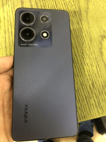 Infinix X6532 smartfon - Model: Infinix X6532 (etiketdə göstərilib) - Rəng: Tünd boz/kosmik boz arxa panel - Arxa kamera sistemi: 2 böyük dairəvi modul + əlavə sensor və LED flaş; modul üzərində “...