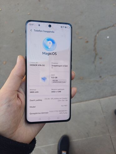 HONOR x9b smartfon 256gb rom 8+8 ram əla vəziyyətdə adapterdə üstündə veriləcəy arginal üstündə gəlmədi Xüsusiyyətlər: - Arxa tərəfdə dairəvi modulda “Matrix AI Vision Camera” sistemi - Çoxsensorl...
