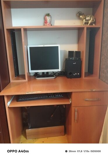 Komputer masasi satilir.. komputer hazirda islemir. Format lazimdir..yer tutdugu ucun satiram.Klavyatura, kamera ,kalonka ,monitor ,prosessor komputer masasinin ustunde verirem