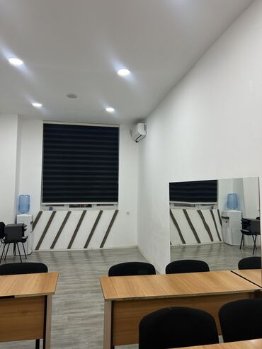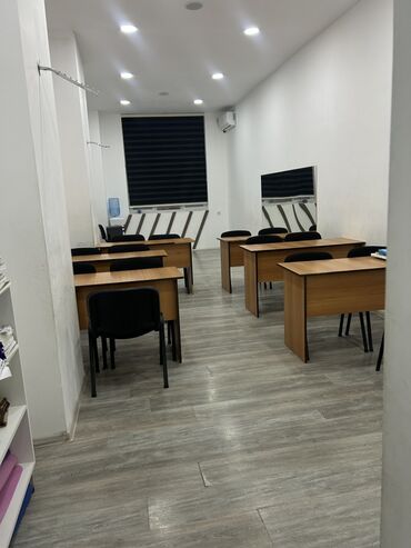 Tədris otağı (sinif otağı) icarəsi - Parlaq, hündür tavanlı otaq, iri pəncərə ilə təbii işıqlanma - 12 ədəd ikinəfərlik taxta masa və yumşaq oturacaqlar (təxminən 18 yer) - Tavan montajlı proyekto...