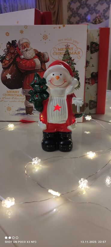 4) Qar adamı fiquru – əlində şam ağacı və fincan, sinəsində ulduz şəklində işıq pəncərəsi.