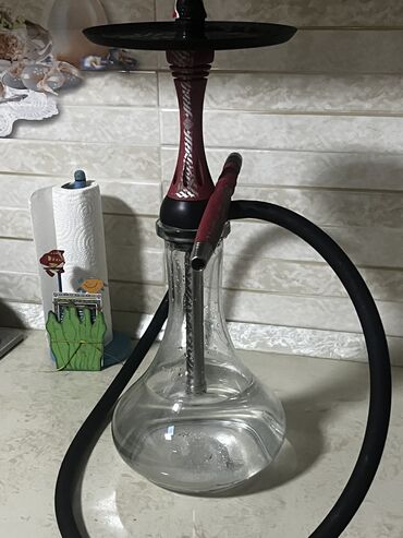 Kalyán (şişə qablı, şlanqlı) - Material: qalın şüşə kolba, alüminium