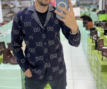 Pulsuz çatdırılmaKişi kardiqanı – tünd lacivərt rəngdə, tam boyu GG naxışlı.
