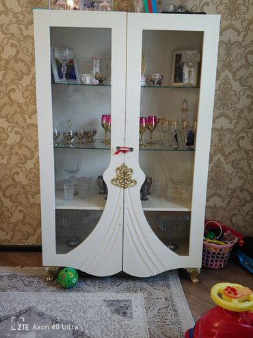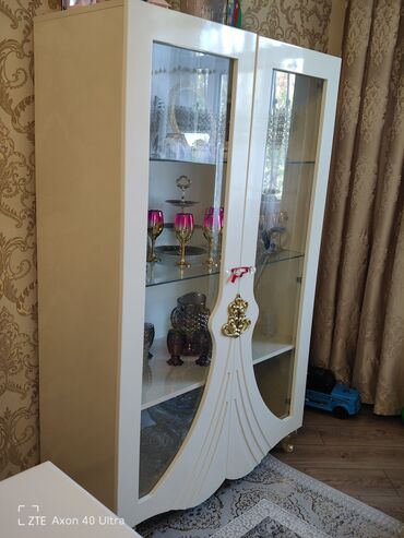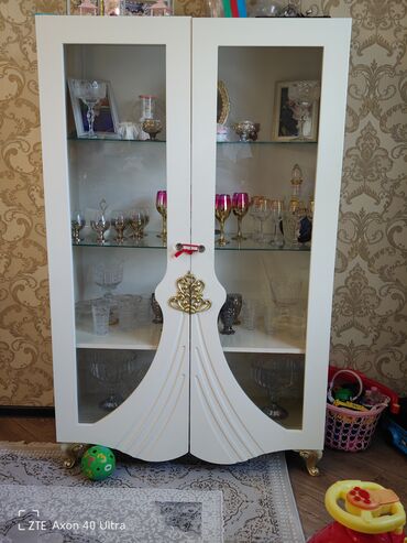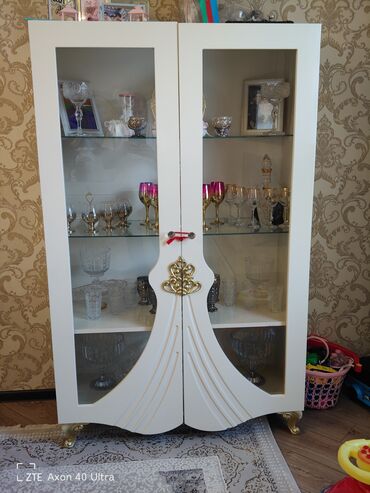 Qonaq otağı üçün uyğun, bokallar, fincanlar, kristal və suvenirlər üçün səliqəli vitrin təqdimatı yaradır. Dizayna klassik-lüks toxunuş qatır.