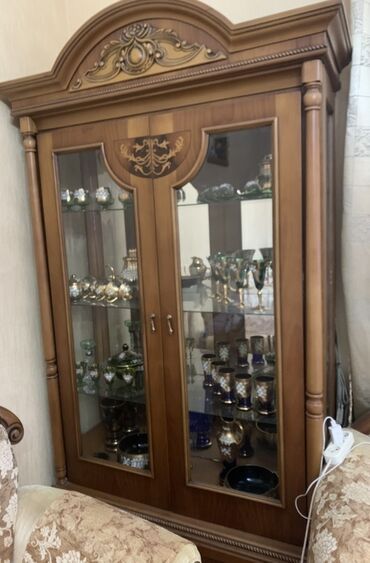 Klassik üslubda dəst: geniş kreslo və vitrin şkaf