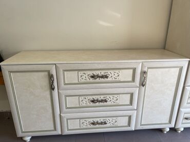 - Sol hissə: geniş komod – 1 qapalı bölmə + 3 dərin çekmece + əlavə yan qapalı bölmə