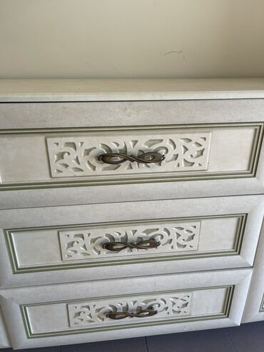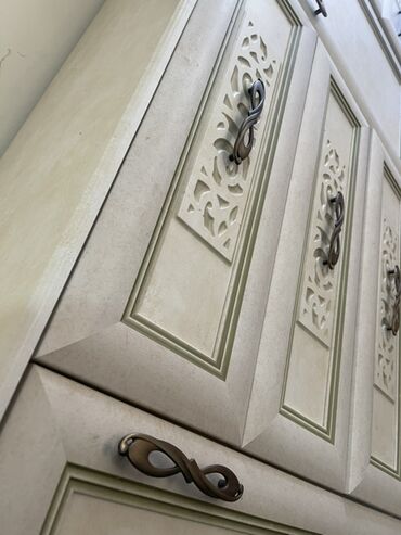 - Furnitura: antik bürünc tonlu metal tutacaqlar (fiqurlu), yumşaq şəkildə qapanan menteşələr