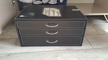 Paslanmayan poladdan stolüstü dəst – futlyarlı - Komplekt: bıçaq, çəngəl, qaşıq və desert qaşıqları; sup qaşığı/keşkül qaşığı; uzunsaplı qarışdırıcı qaşıqlar. Hissələr üzərində dairəvi naxışlı iki...