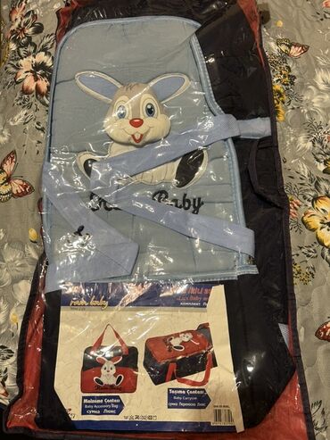Uşaq üçün daşıma dəsti - Rəng: qırmızı-göy - Dəst: 2 hissə 1) Körpə daşıyıcısı/sling – kəmərli, yan və çiyin qayışları, düyməli başlıq/qapaq hissəsi. Ön tərəfində dovşan naxışı. 2) Uşaq üç...