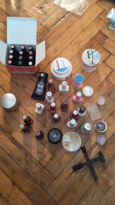 - Dırnaq bəzəkləri: straz/metal dekorlar, payetlər, folqa və qarışıqlar üçün qablar