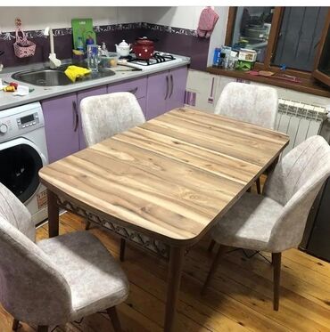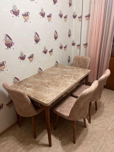 Mətbəx üçün, Yeni, Açılmayan, Dördbucaq masa, 4 stul