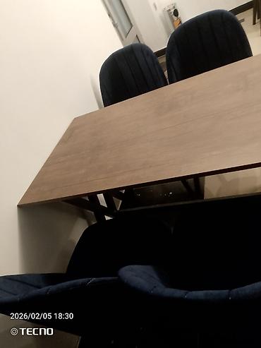 - Stullar: 4 ədəd, dərin göy rəngli yumşaq oturacaq və söykənəcək, şaquli tikiş xəttləri ilə. Rahat süngər dolğu, gündəlik istifadə üçün uyğundur.