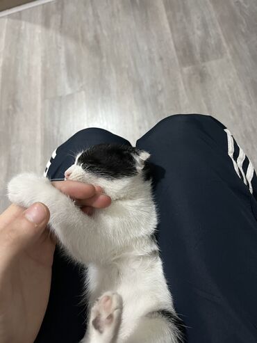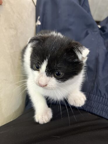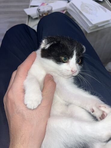 Pulsuz yaxşi ələrə Qara-ağ rəngli, bükük qulaqlı balaca pişik balası
