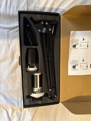 Yeni, qara rəngli mikrofon dəsti. Dəstə mikrofon, mikrofon dayaqı, pop filter və digər aksesuarlar daxildir. Evdə studiya səsyazmaları üçün və ya podkastlar üçün əlverişlidir. Ağ və qara rəngi mövcuddur.