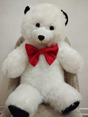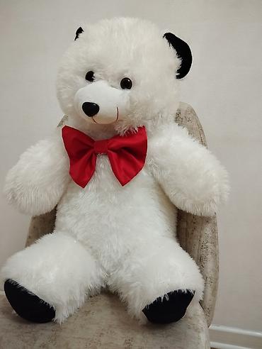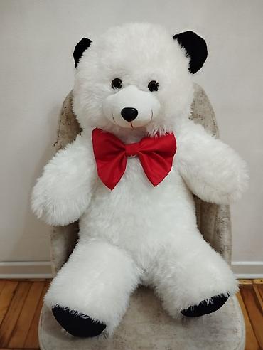 Böyük ölçülü yumşaq oyuncaq ayı - Rəng: krem-ağ tüklü gövdə, qara