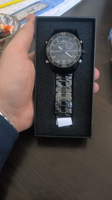 Naviforce firmasının qara rəngdə, həm analoq, həm də rəqəmsal ekranlı qol saatı. Metal qolbağı və davamlı korpusu ilə bu saat, idman və gündəlik istifadə üçün əlverişlidir. Əlavə olaraq, xronometrlə təchiz edilmişdir.Naviforce saat satilir.Orginal məhsuldur.İstənilen yerde yoxlada bilersiz.Pasport qablasdirma qiymete daxildir.Wp-da əlaqə saxlaya bilərsiz.