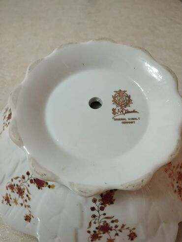 Alman istehsalı kolleksiya qabı – “Original Kobalt Germany” damğalı dekorativ porcelan meyvə/şirniyyat boşqabı.