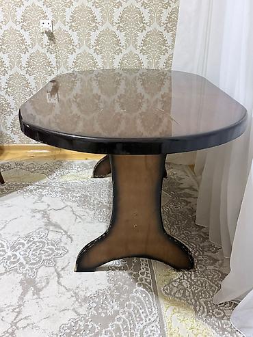 Tecili Satılır deye bu qiymetedir whatsap nömremle elaqe saxlayın Taxta yemək/çay masası - Klassik dizayn: Oval formalı üst səth, iki ayaq üzərində dekorativ ara taxta (karkas) ilə birləşdirilib. ...