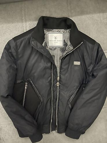 - Qara bomber üslublu üst geyim: ön hissəsi ikili fermuarlı, yanlarda böyük fermuarlı ciblər, elastik bel və manjetlər. Arxasında iri PP loqosu və “PHILIPP PLEIN” yazısı, daxili astarı naxışlı. Yüngül, külək keçirməyən üst material və rahat yaxa.