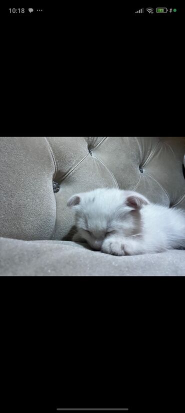 Şotland Qatlama pişik cinsindən, ağ rəngdə, sarı gözləri və çəhrayı burnu olan bir pişik. Qulaqları qatlanmışdır. Evdə saxlamaq üçün uyğundur. 1 yaşı var Qum tərbiyyəsi var Bütün peyvəndləri olunub...