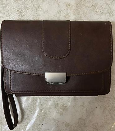 Yenidir 1 dəfə istifadə olunub Qəhvəyi rəngdə, ilan dərisi fakturalı qadın clutçu/əl çantası - Material: Parlak, teksturalı süni dəri (ilan dərisi effekti) - Rəng: Tünd-qəhvəyi/bronza tonları - Fo...