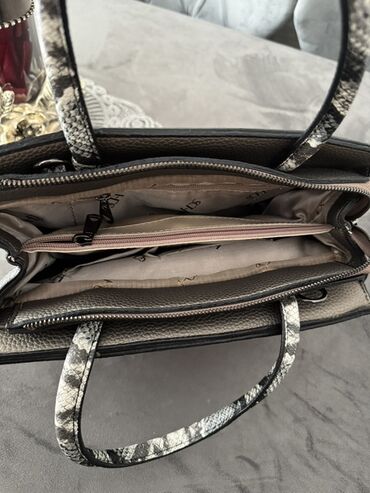 Bozİkinci el cox az istifade olunub. Cox seliqeli qalib. Zərif ilan dərisi naxışlı və gümüşü rəngli detalları olan bu əl çantası, gündəlik istifadə üçün ideal seçimdir. Çantanın üst hissəsi ilan dərisi naxışlı, alt hissəsi isə teksturalı gümüşü rəngdədir. Rahat daşıma üçün iki qısa sapı var və qapağı maqnit bağlama ilə təmin edilib. Çanta, təhlükəsiz saxlama üçün arxa tərəfində fermuarlı cibə malikdir. İçərisində əşyalarınızı səliqəli yerləşdirmək üçün geniş yer mövcuddur. Bu çanta həm dəbli, həm də funksionaldır, müxtəlif geyimlərlə asanlıqla uyğunlaşır. Materialı və dizaynı onu həm gündəlik, həm də xüsusi tədbirlər üçün uyğun edir. Çanta müxtəlif materialları və tonları özündə birləşdirir, bu da onu çox yönlü və göz oxşayan bir aksesuar edir. Mükəmməl şəkildə hazırlanmış detallar çantanın ümumi görünüşünə zəriflik qatır.