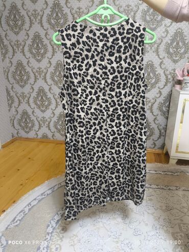Qadın paltarı – DiMare, model: 13-41769 VESTITO, ölçü: 46 (etiketdə “ORIGINALE 46”). - Dizayn: heyvan printi və etnik-ornamental motivli çoxrəngli naxış; leopar effekti ilə diqqətçəkən mərkəzi si...