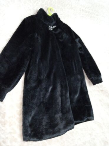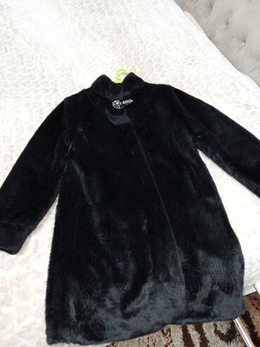 kürk qadın palto - Material: yumşaq, parlaq teksturalı kürk; iç hissə nazik qatlanmış astarlı - Rəng: dərin qara - Dizayn: düz kəsim, dizə yaxın uzunluq - Yaxalıq: klassik dairəvi yaxa, yaxada de...
