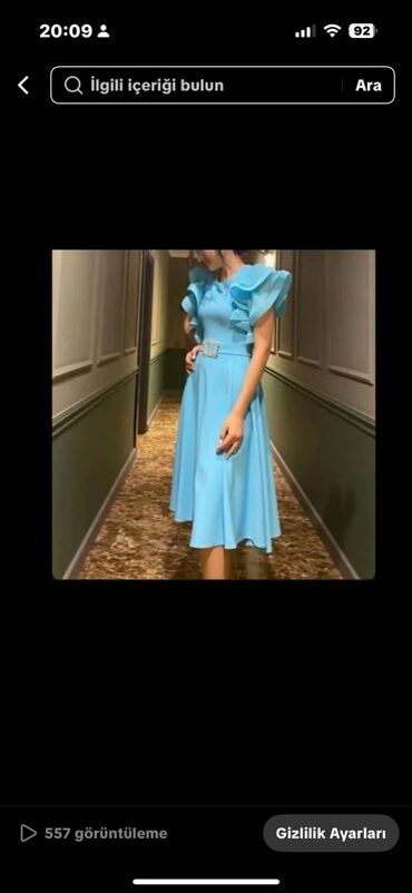 Zərif ziyafət donu –mavi rəngdə, midi uzunluqda. - Üst hissə: qısa
