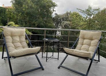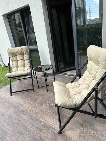 Həm şezlonqlar həm də sehpa qatlana bilir, komfortludur, bağ evi