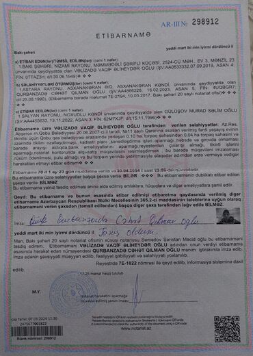 30 sot, Tikinti, Barter mümkündür, Kupça (Çıxarış)