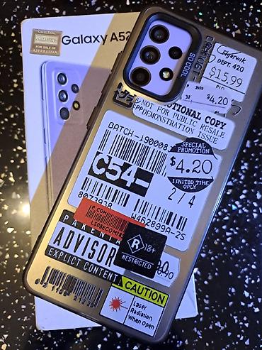 Qeyd: Şəkillərdə Baku hava proqnozu ilə işlək vəziyyətdədir. Model A52-nin standart funksiyaları – Always‑On Display, Night mode kamera, 4K video, microSD dəstəyi.